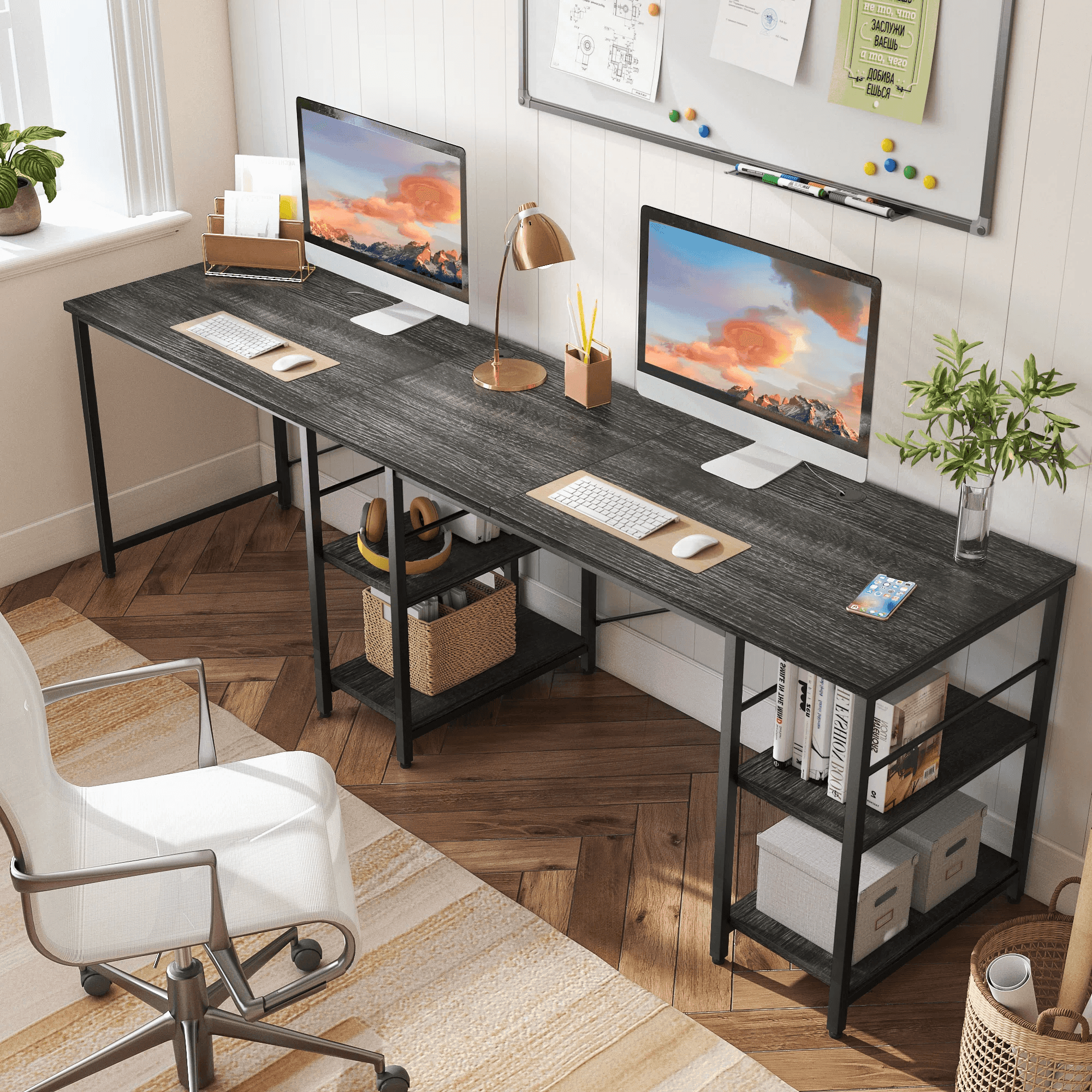 Ansel Office Desk with Sliding Door – Black Ash & Wild Oak Finishes