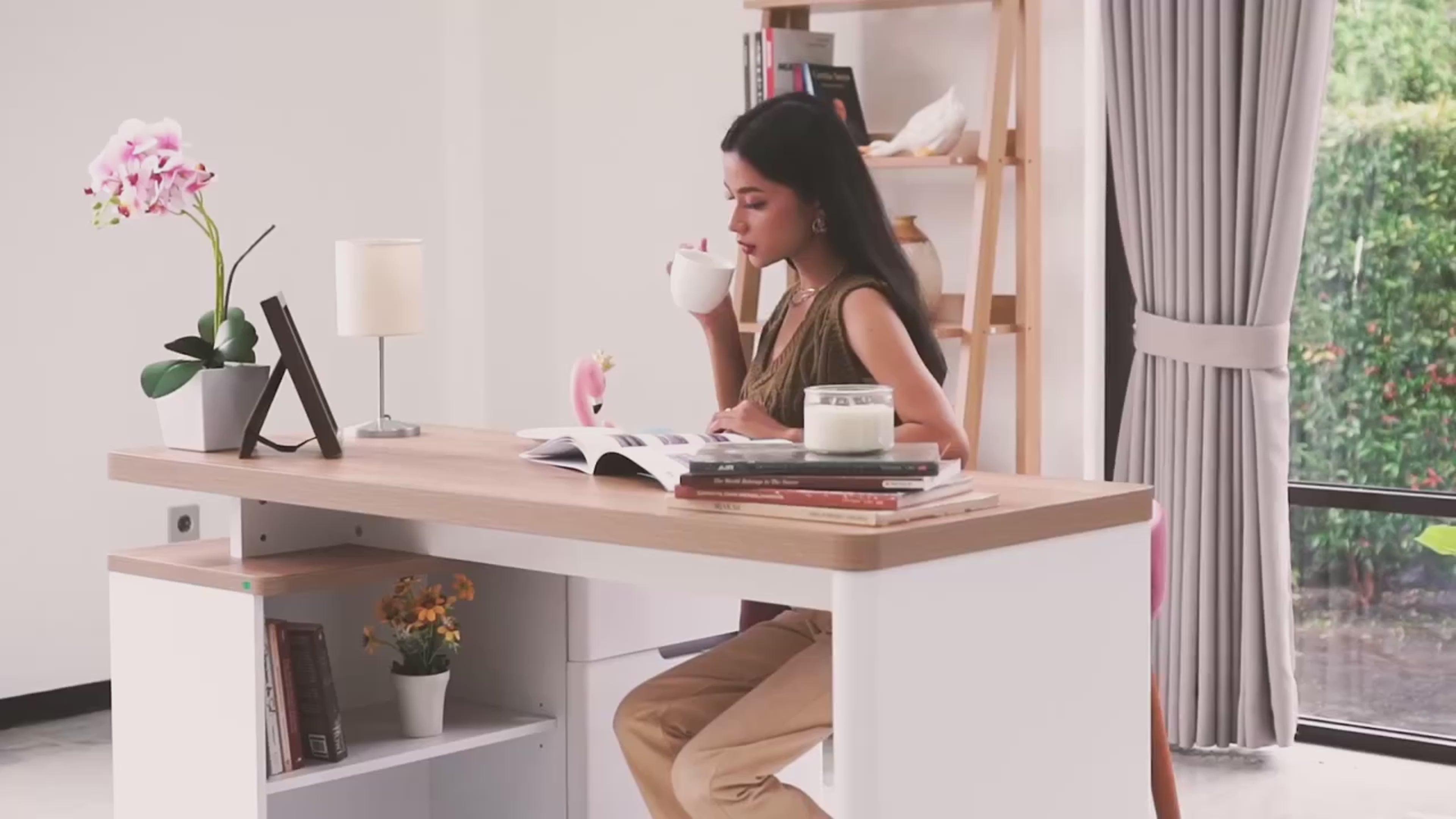 - Sleek design: With precious rounded corners, the desk exudes an air of sophistication and modernity. Every edge and curve has been thought out, ensuring that it’s not just a piece of furniture but a statement.